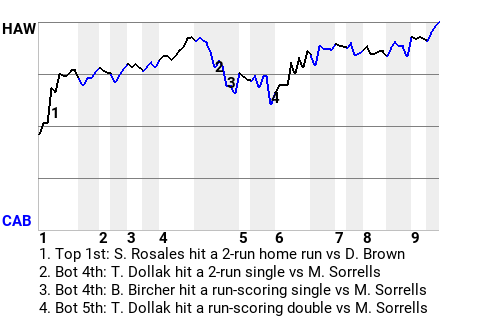 Hawaii used a clutch at-bat from Sandy Rosales to capture the win. The left fielder hammered a 2-run home run in the top of the first inning to put the Honu ahead, 2-0. It was his lone hit in 5 at-bats, but it was a humdinger.