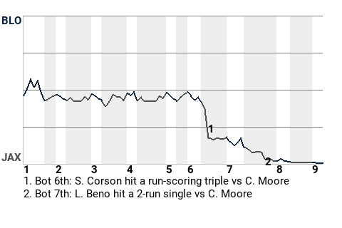 The Pilots got a big at-bat from second baseman Sam Corson. For the game, Corson went 1-4 with a triple. In the bottom of the sixth, with a runner on 1st, he stroked a run-scoring triple. His 7th triple of the season gave Jacksonville a 1-0 lead.