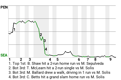 Corbin Betts had a big grand slam home run for the Sasquatch in the bottom of the third inning. With Seattle leading 3-2 and the bases loaded, he sized up a sinker from Mario Solis, who is tied for 4th in the RCL in complete games with 1, and punished it. The result was his 36th home run of the season, which put the Sasquatch on top, 7-2.