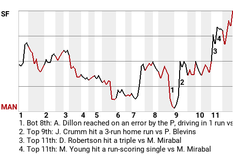 2 (2, 4th Inning off M. Maxfield, 1 on, 0 outs; 7th Inning off C. Clermont, 2 on, 2 outs)
