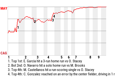 Eddie Garcia helped his team muscle past the Caguas Creoles, 7-1. In the game, the Mayaguez designated hitter went 1 for 4 with a home run, while adding 3 RBI and scoring once. Mayaguez now has a 5-game win streak.