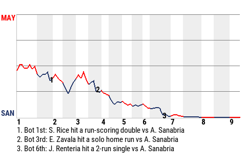 2 (13, 2nd Inning off A. Sanabria, 0 on, 0 outs; 4th Inning off A. Sanabria, 0 on, 0 outs)