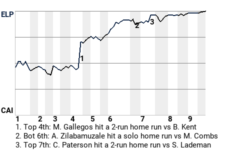 (7, 4th Inning off B. Kent, 1 on, 2 outs)