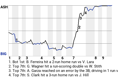 (9, 7th Inning off W. Stith, 0 on, 0 outs)
