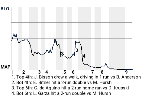 In the bottom of the sixth, the Marauders grabbed the lead when Garza hit his 29th double of the season. The 2-run double off Mike Hursh made it 6-4, Maple.