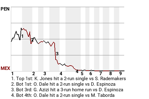 Dale contributed in the bottom of the first. With the bases loaded, he hit a 2-run single. It was one at-bat among others that helped Mexico City get the win.