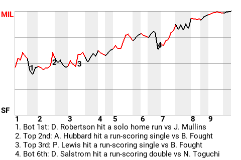 Starting pitcher Josh Mullins pitched well enough to help the Milwaukee Millers beat the San Francisco Earthquakes, 7-3. The winning pitcher was Mullins, now 5-6. He tossed 5.2 innings of 4-hit ball, while walking 1 and fanning 3. Milwaukee is 5th in the Thurman Munson League Billy Martin Division with a record of 62-72.