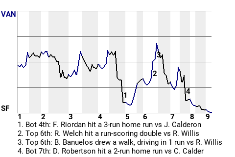 2 (5, 4th Inning off J. Calderon, 2 on, 2 outs; 8th Inning off C. Calder, 0 on, 2 outs)