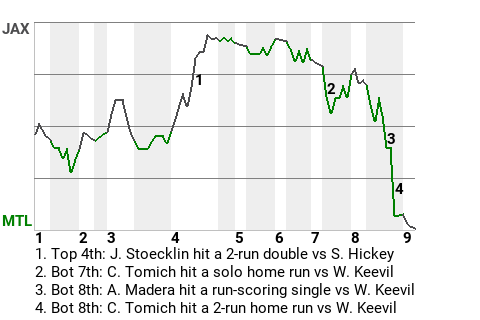 2 (10, 5th Inning off K. Aubin, 1 on, 2 outs; 7th Inning off J. Sherry, 0 on, 1 out)