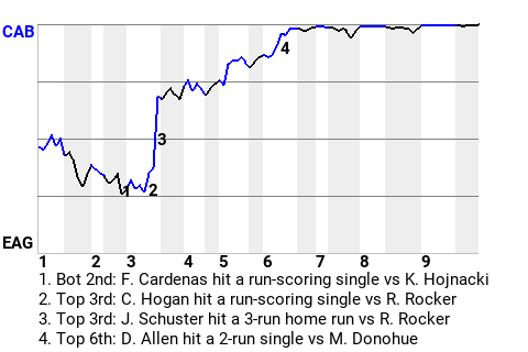 2 (10, 3rd Inning off K. Hojnacki, 0 on, 2 outs; 6th Inning off K. Hojnacki, 0 on, 0 outs)