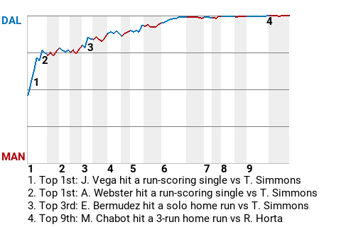 (3, 9th Inning off R. Horta, 0 on, 0 outs)