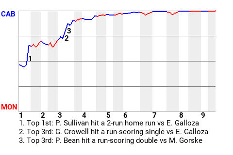 2 (3, 1st Inning off E. Galloza, 0 on, 2 outs; 3rd Inning off M. Gorske, 1 on, 1 out)
