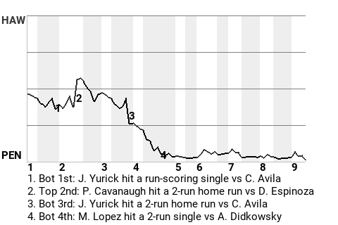2 (2, 2nd Inning off D. Espinoza, 0 on, 1 out; 6th Inning off M. Taborda, 0 on, 2 outs)