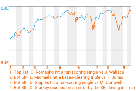 Riding the 3-hit performance of shortstop Fernando Puente, the Quebec Armada got a road win against the Buffalo Bison, 7-6, in Game 3 of the Wild Card Round. Puente went 3 for 3 with a home run, 2 singles, and a walk. He drove in 2 runs and scored once for the Armada, who now lead the best-of-7 series, 2 games to 1.