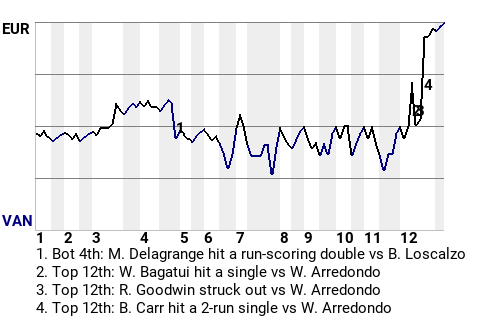 The game was at a stalemate until second baseman Brian Carr came to bat in the top of the 12th. Facing Vancouver pitcher Willie Arredondo, he hit a 0-2 changeup for a 2-run single. It was a game-changer, putting Eureka on top, 3-1.