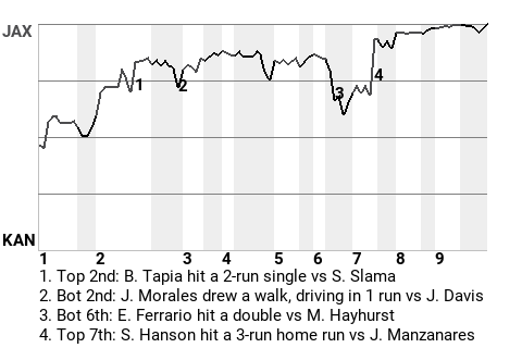 2 (8, 1st Inning off J. Miller, 2 on, 1 out; 4th Inning off B. Epperson, 1 on, 2 outs)