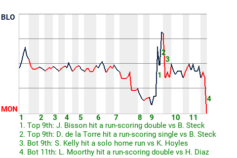v - A. LeBaron pinch hit for D. de la Torre in the 11th